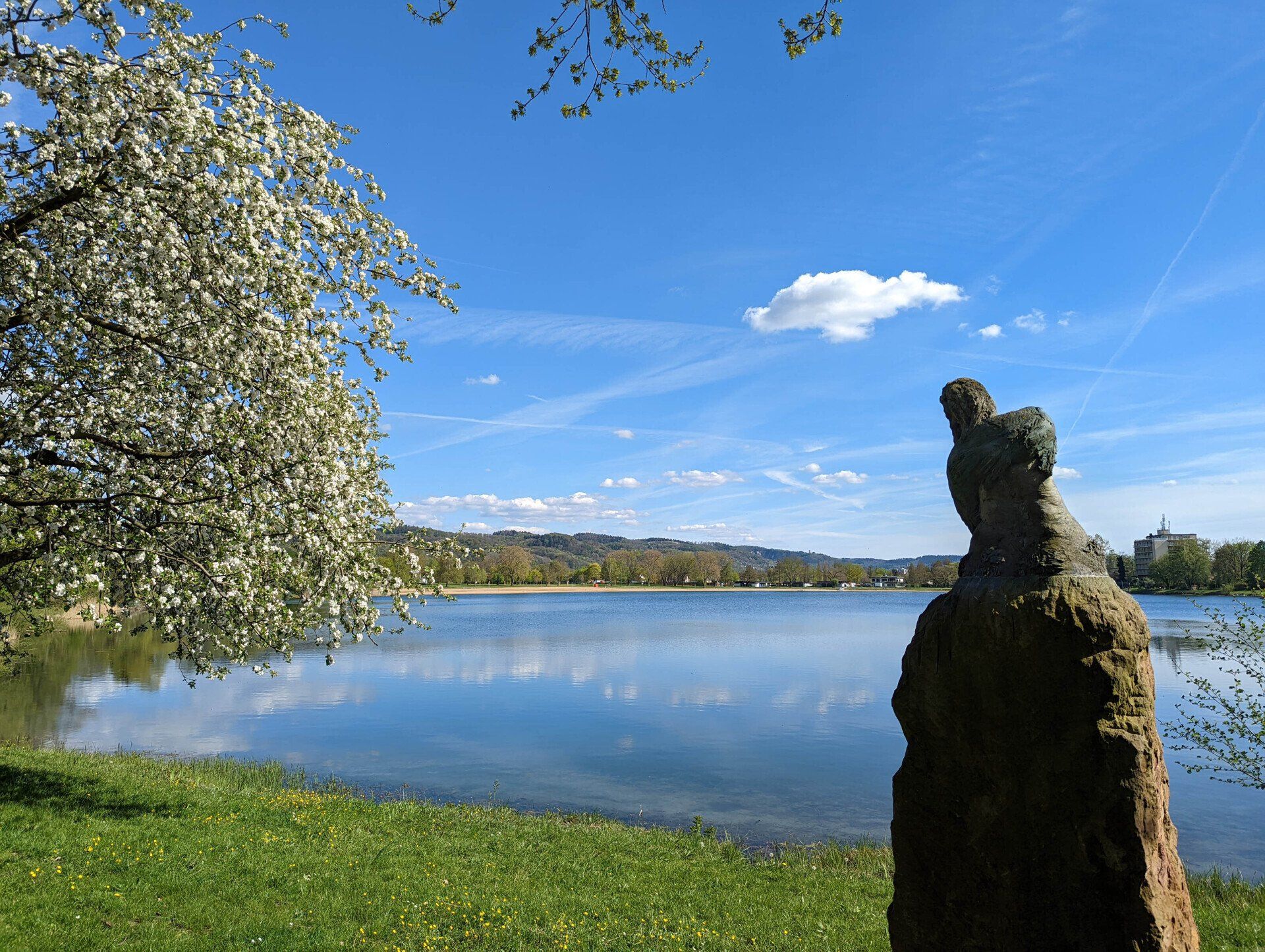 Wenn im Mai dann die Badesaison beginnt (Stichtag 2025 ist der 15. Mai), steht unseren Gästen der direkt am Platz liegende Wiesensee mit breitem Sandstrand, großer Spiel- und Liegewiese und ein beheiztes Schwimmbecken kostenlos zur Verfügung (hier sind keine Hunde erlaubt).